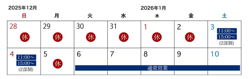 2025年-2026年 年末年始休業のお知らせ